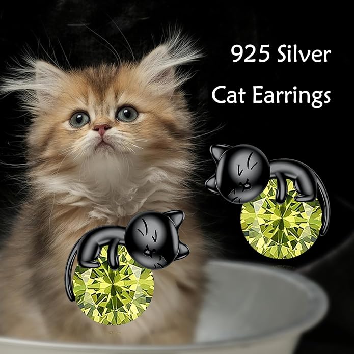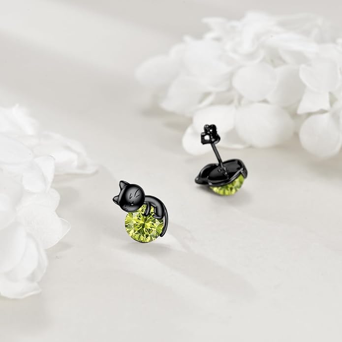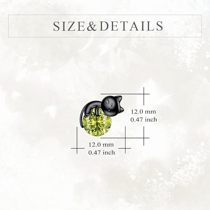 - ๐ Design: These black cat birthstone earrings are crafted in 925 sterling silver and feature a cute black cat design with a August birthstone accent. The unique design and high-quality craftsmanship make these earrings a stylish and fun accessory for any outfit.