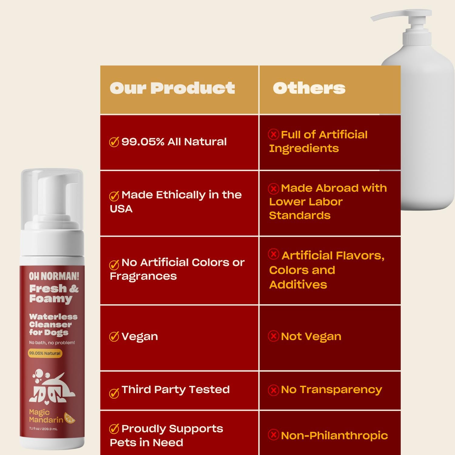 - Fresh & Foamy: No bath? No problem! Our waterless dog shampoo is hypoallergenic and cruelty-free. In just three steps, your pet will smell like magic
