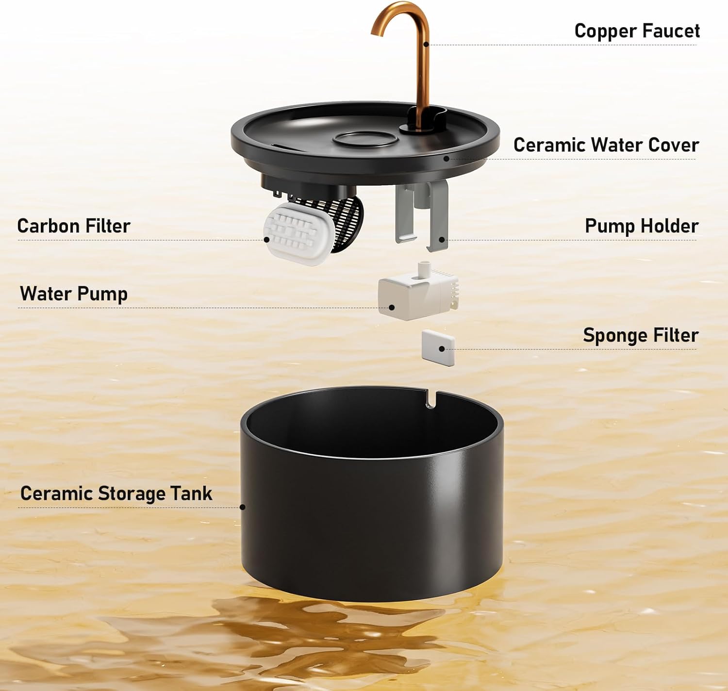 - ✔Multiple FILTRATION SYSTEM: The ceramic cat water fountain is equipped with a double filtration system of carbon filter and sponge. The sponge can filter impurities, and the carbon filter can capture hair and soften water quality, improve taste, Provide purer water for your lovely pets.