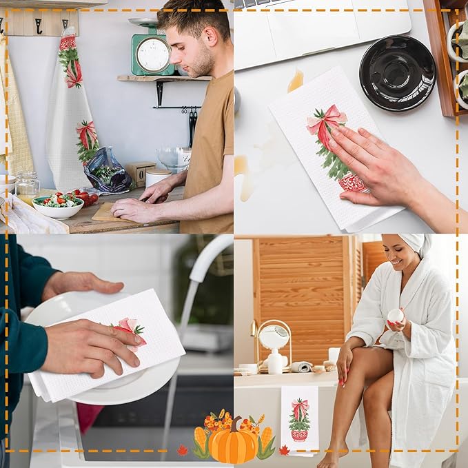 - Multi-Functional: These elegantly designed kitchen towels not only add a charming touch to your decor but also serve various functions, from drying dishes to wiping countertops, enhancing your kitchen's look.