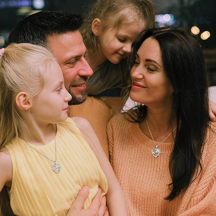 EUDORA Sterling Silver Mother Daughter Necklace for Women, Mama Son Daughter Necklace Pendant for Mom and Daughter,Mom Jewelry from Daughter Mother's Day Gift for Mother Daughter Aunt Grandma