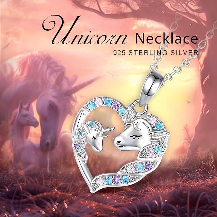 - NECKLACE MATERIAL: Unicorn Motherly Love necklace is made of fine 925 sterling silver and cubic zirconia, rhodium plated surface. These safe materials have low sensitivity and oxidation resistance, zircon is also very shining.