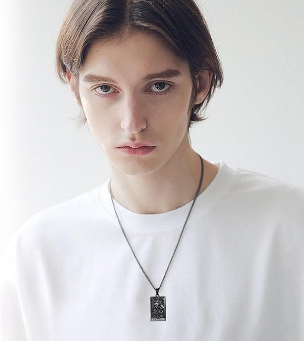 - ★ TAROT CARD NECKLACE ★ With a rectangle pendant, this tarot jewelry is easy to match clothes. Suitable for men and women: father, mother, grandfather, grandmother, son, daughter, grandson, granddaughter, husband, wife, fiance, fiancee, uncle, aunt, nephew, niece, brothers, sisters, siblings, cousins, friends, couples, etc.