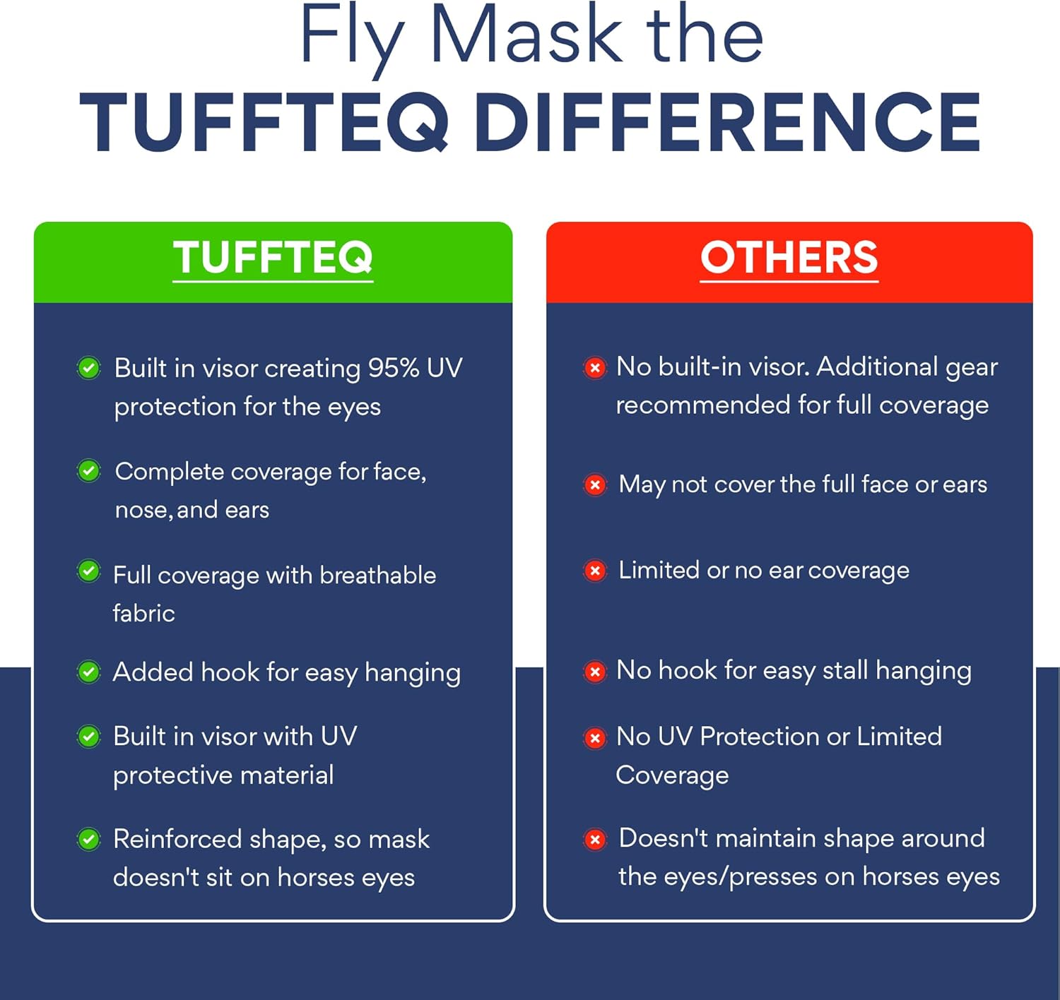 - 𝐄𝐧𝐡𝐚𝐧𝐜𝐞𝐝 𝐔𝐕 𝐏𝐫𝐨𝐭𝐞𝐜𝐭𝐢𝐨𝐧 & 𝐂𝐨𝐦𝐟𝐨𝐫𝐭: Featuring a built-in visor with UV-blocking material, this fly mask provides excellent protection from harmful sunlight and glare, while ensuring your horse’s visibility is not compromised. The design offers full coverage for the face, nose, and ears, keeping your horse comfortable and reducing eye strain, even under intense sunlight. With this mask, your horse stays protected and alert, no matter how bright the day.