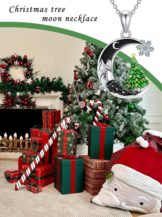 - Christmas Jewelry Gift: 1*Christmas tree moon necklace,1*gift box,1*polishing cloth.A perfect present for mom, grandma, wife, girlfriend, best friend on a birthday, christmas, valentine's day, mother's day or any important occasion