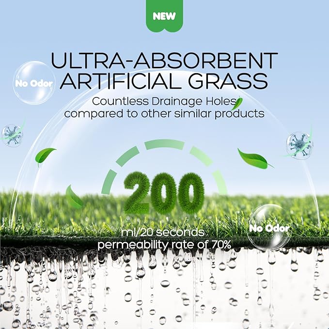 - 2 PCS ODOR FREE DOG POTTY GRASS DAILY REPLACEMENT: Atboma dog pee grass is thick, soft , hemmed,washable, and most of importatntly ODOR-FREE. As it has no rubber bottom like ordinary fake grass for dogs. The ultra absorbent dog grass fiber is knitted, thus countless holes for urine to pass through. No issues of stink, rubber shredding, hard-cleaning and unsafe for dog. It's the high quality artificial grass for dogs potty.