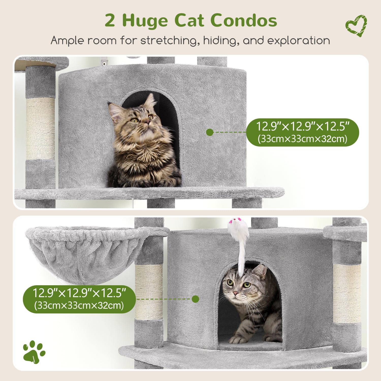 - Extra-Large Platform: C66 adult cat tree designed with a 17.7"x14.9" fan-shaped platform, offering ample space for activities, allowing adult cats to comfortably observe their surroundings or stretch their bodies