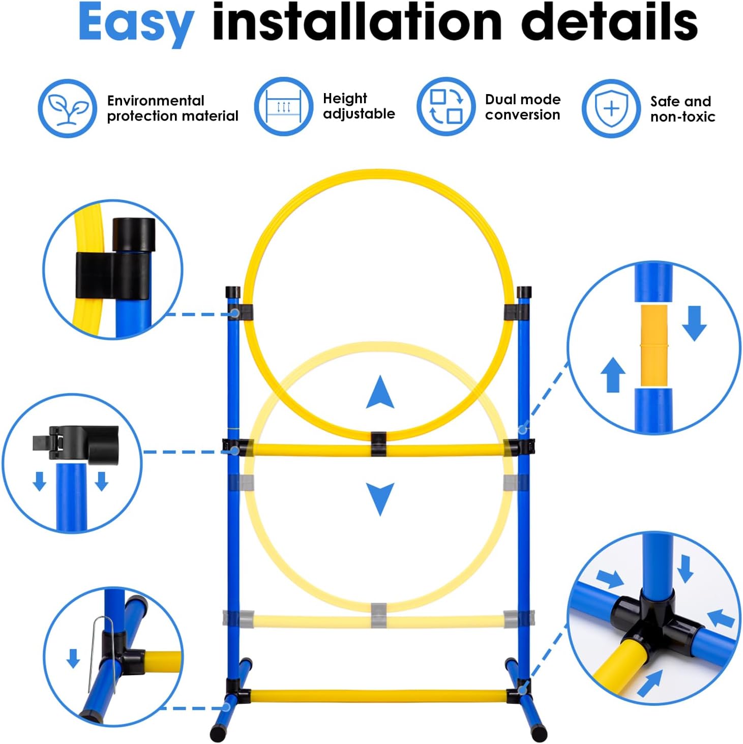 - HEALTH & FUN:Running, jumping, playing and crossing obstacles can improve your dog's agility and flexibility, make your dog more active and health, and getting closer between you and your pet. What a great way to spend time with your pet!