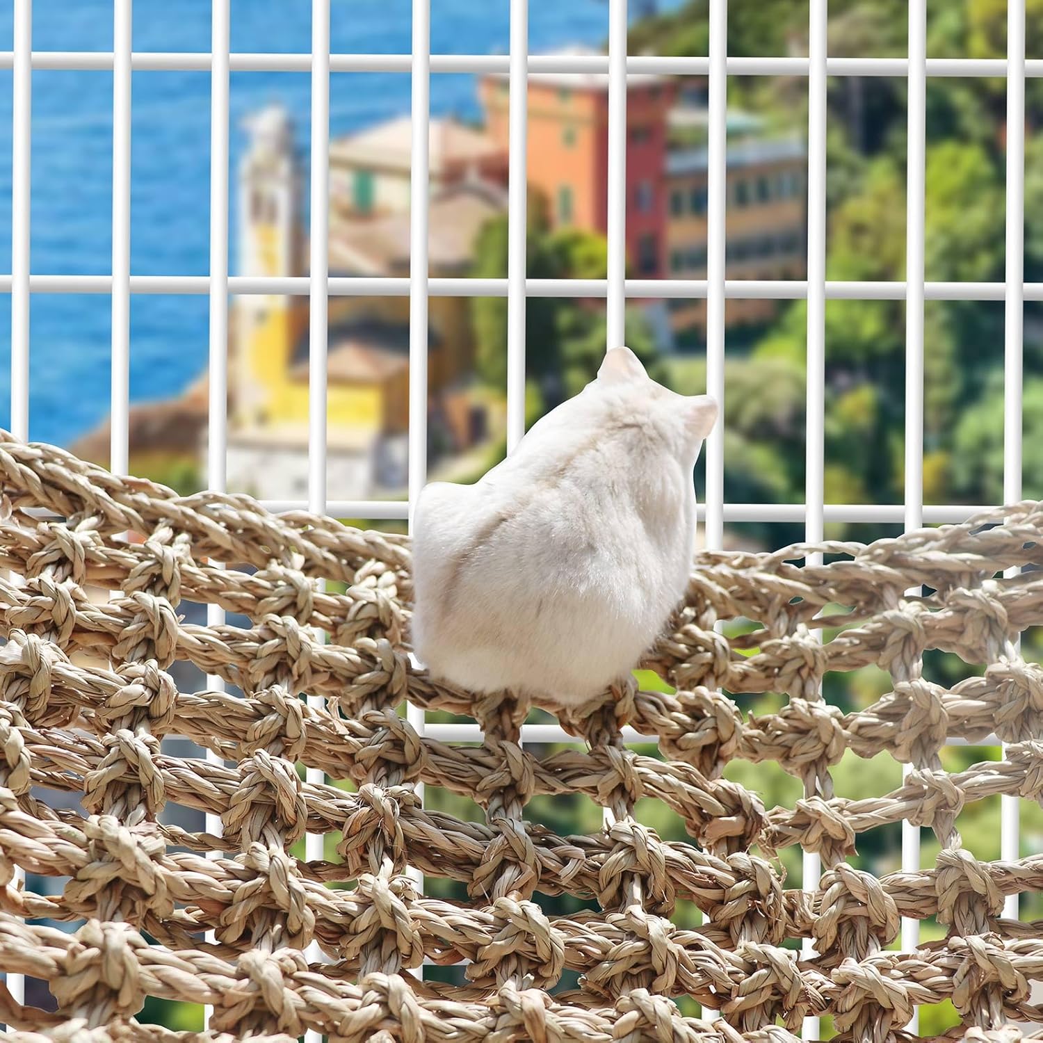 - Multiple Installation Methods: The package of the seagrass mat contains 4 very strong plastic hooks. You can hang the seagrass mat in parallel to make a hammock swing toy, or hang the seagrass mat vertically to make a bird ladder climbing toy.