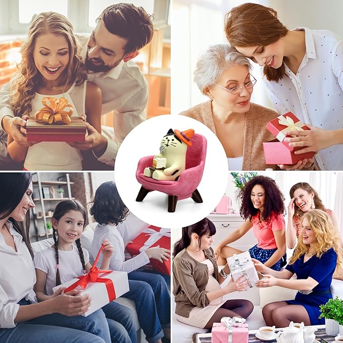 - Cute Desk Accessories: The dimensions of the cat are 0.95*1.25*1.6 inches, and the sofa measures 1.9*1.9*2 inches. This design adds charm and whimsy to your workspace