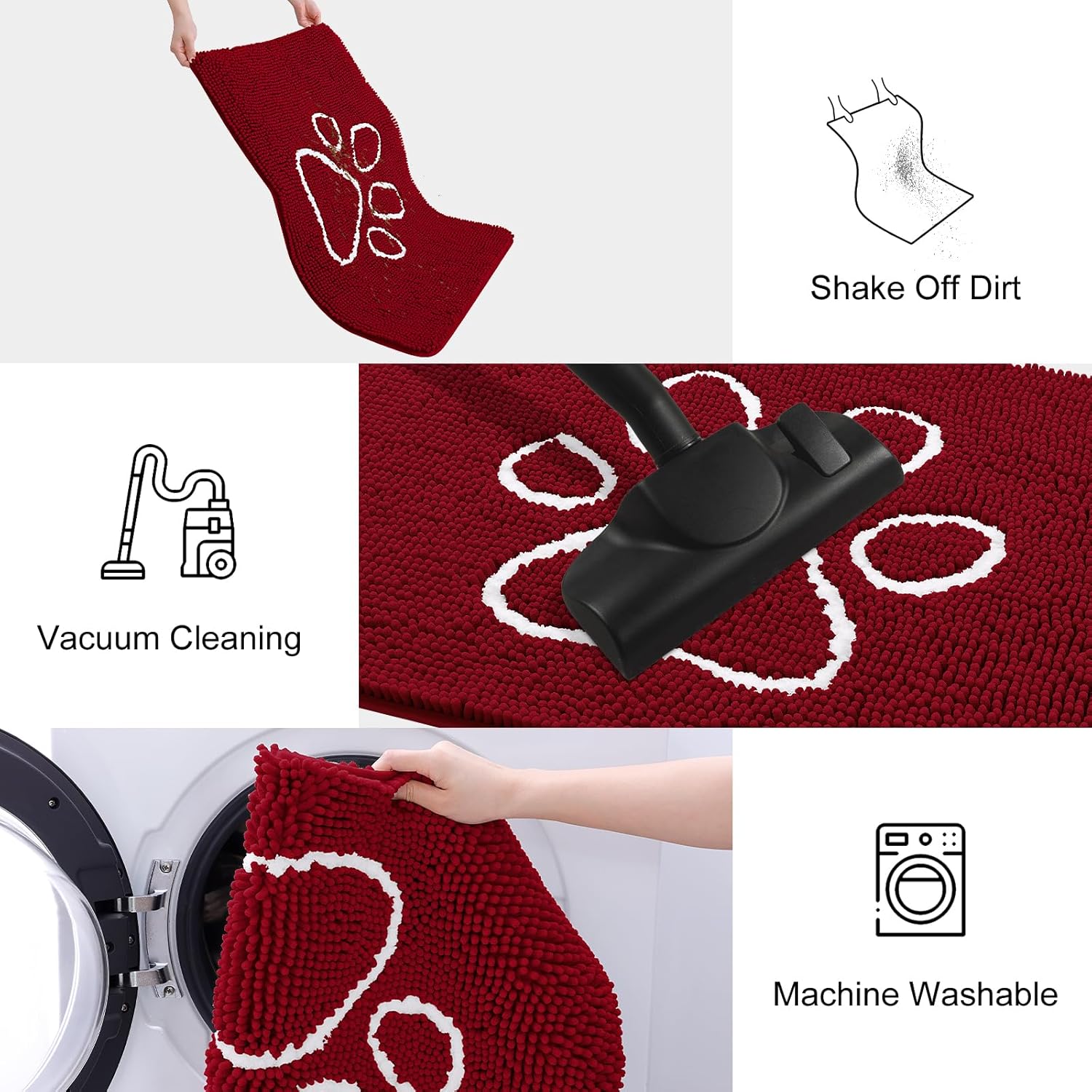 Smiry Dog Door Mat for Muddy Paws, Absorbent Dirt Trapper Non Slip Quick Dry Washable Chenille Mat for Mud Dogs, Entry Rug for Indoor and Outdoor (30x20 Inches, Red)