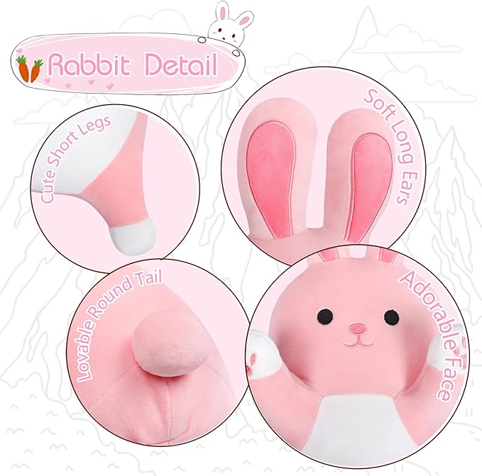 - 【Kawaii Large Plush Rabbit】This long rabbit pillow have 35.5 inches long and is a cute pink rabbit, making it an ideal plush companion. Whether in a room or living room at home, in a company office or lounge, or at a party, it is an ideal choice for kids over 3 years old, adults, or the elderly. Plush pillows are also easy to clean, just dry them in a well ventilated area or use a machine drum for drying.