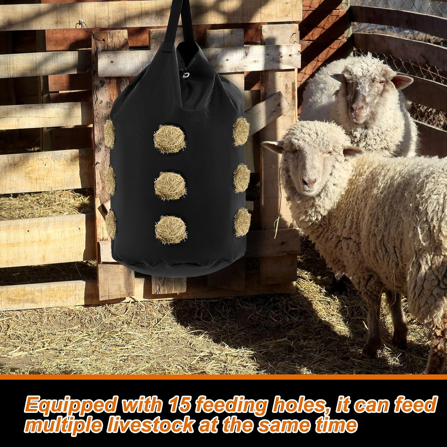 - Facilitates Healthy Eating Habits: each hay bag has 15 feeding holes, the strategically designed 2.99 inches feeding holes in the hay holder restricts rapid eating, encouraging slower and more regular consumption of hay; This not only aids in normal digestion for horses but also caters to horses that eat too quickly or exhibit difficulty eating due to dental issues; This reliable feeding solution ensures your livestock's healthy eating habits are always prioritized