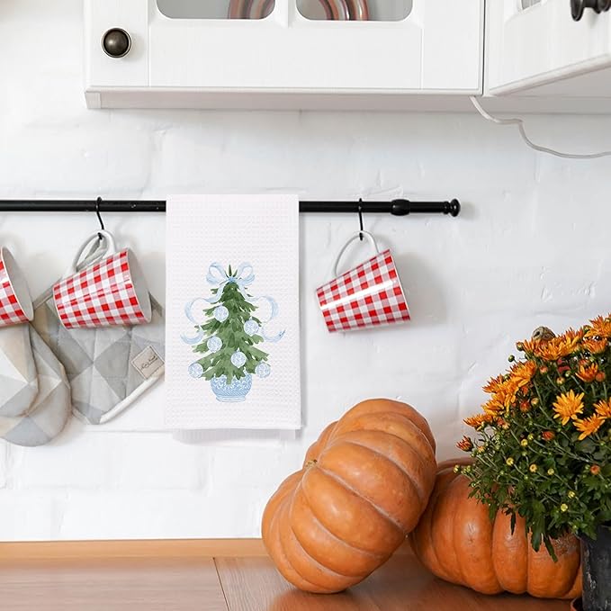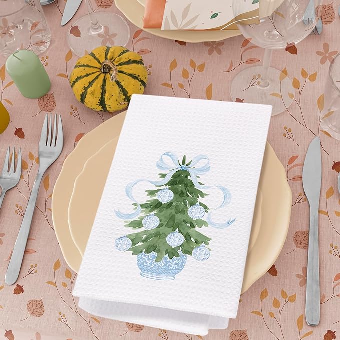 SPBL&L Light Blue Chinoiserie Christmas Kitchen Towels, Light Blue Bow Christmas Hand Towels for Bathroom, Chinoiserie Decor, Christmas Dish Towels, Christmas Kitchen Bathroom Decor, 16x24 Inch