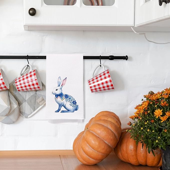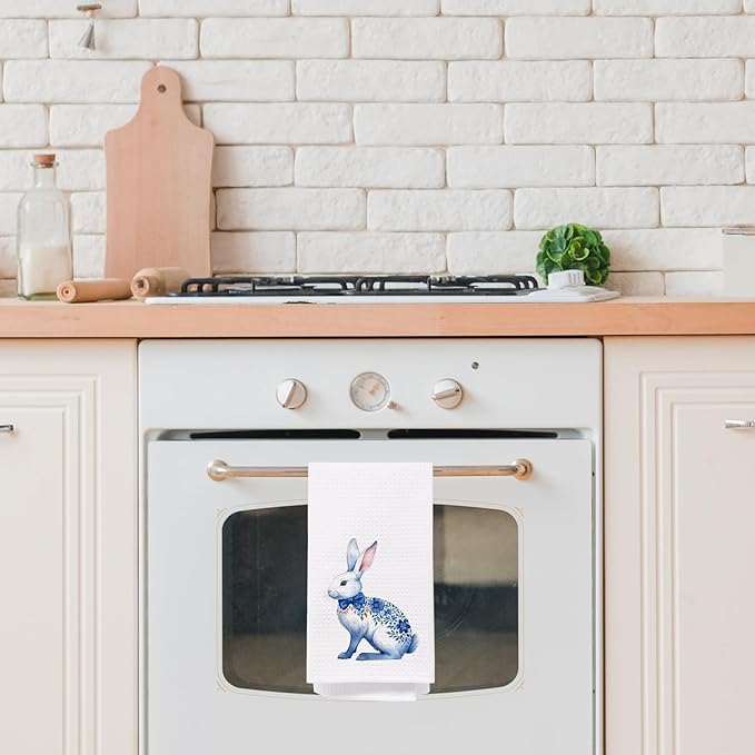 SPBL&L Easter Chinoiserie Hand Towel, Blue Floral Bunny Hand Towels for Bathroom, Easter Kitchen Bathroom Decor,Bunny Decor, 16x24 Inches