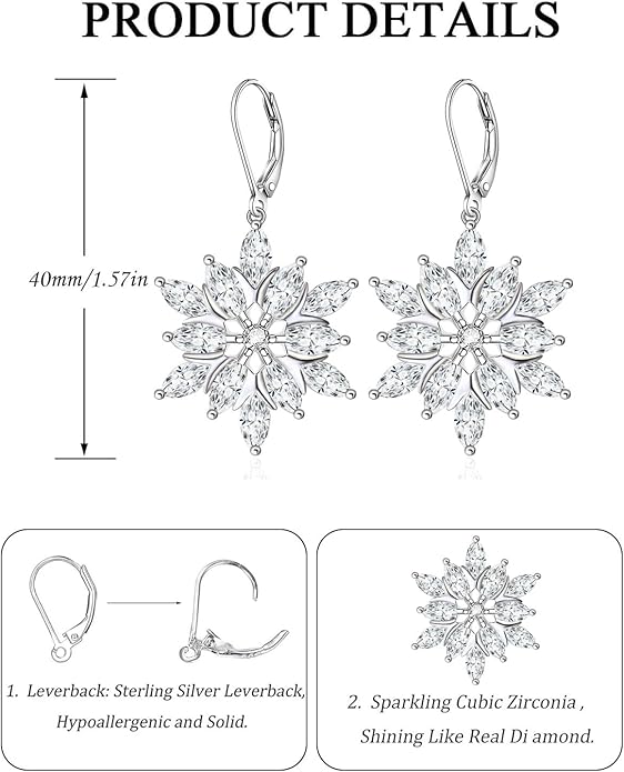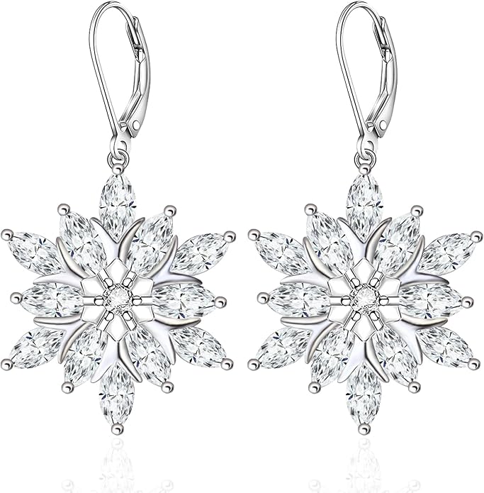 - ✿ Elegance snowflake design earrings embellished with unique marquise cut of the white stones Cubic Zirconia, looks sparkly as crystal, cool and icy, like a piece of snowflake in the winter.