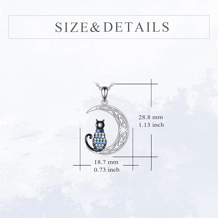 - ๐ Design: This black cat necklace is a beautiful addition to any jewelry collection. The pendant features a sterling silver Celtic knot design with a moon cat silhouette. It makes a unique and thoughtful gift for cat lovers or anyone who appreciates Celtic-inspired jewelry.
