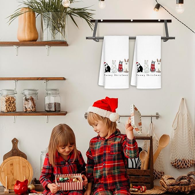 Meowy Cat Towels for Lovers, Cat Christmas Decor for Bathroom Kitchen, 16x24 in