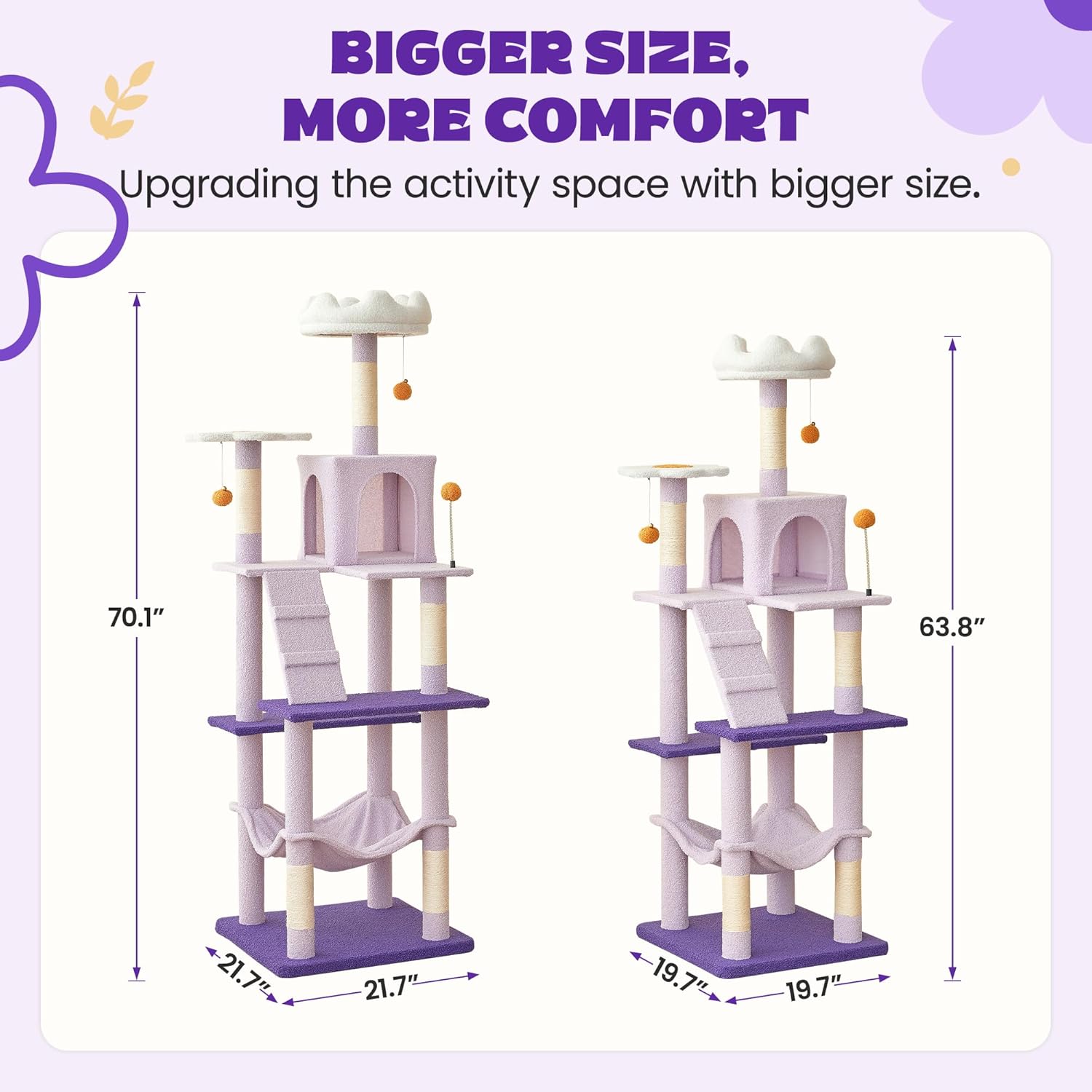 - Larger Size Flower Design: Our classic cat tree has been designed to a larger size with a soft color. This flower cat tree features two petal-shaped resting spots, adds a touch of elegance to your space