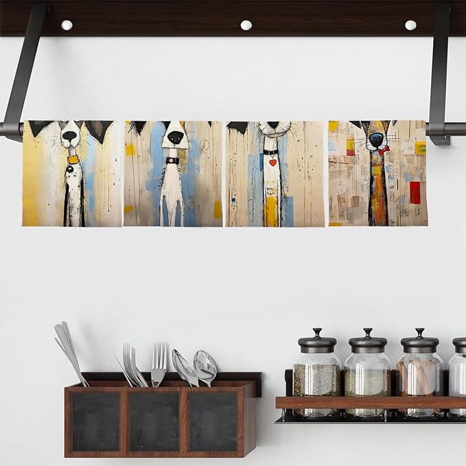 Whimsical Dog Hand Towels - Kitchen and Bathroom Decor, Dish Towels for Dog Lovers, Mom Gifts, 16x24 Inches Set of 4