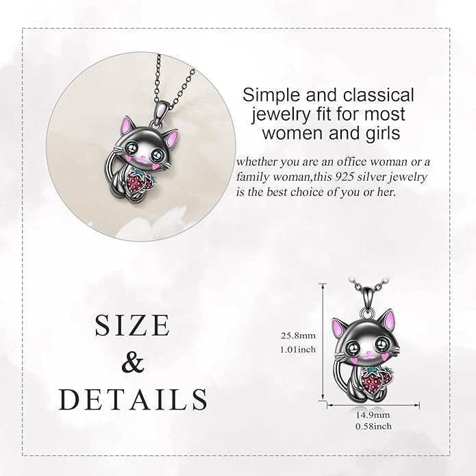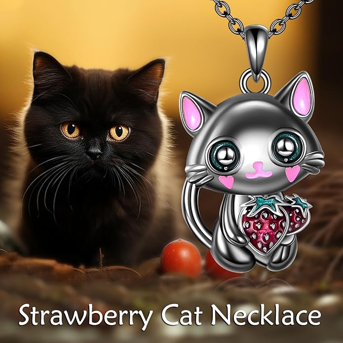- 🐱Our cat necklace --- The black cat has a sense of mystery and is also a symbol of wealth and luck. The cute three-dimensional little black cat is holding a red strawberry, the red strawberry is very realistic and very attractive, so that the kitten is very playful and cute.