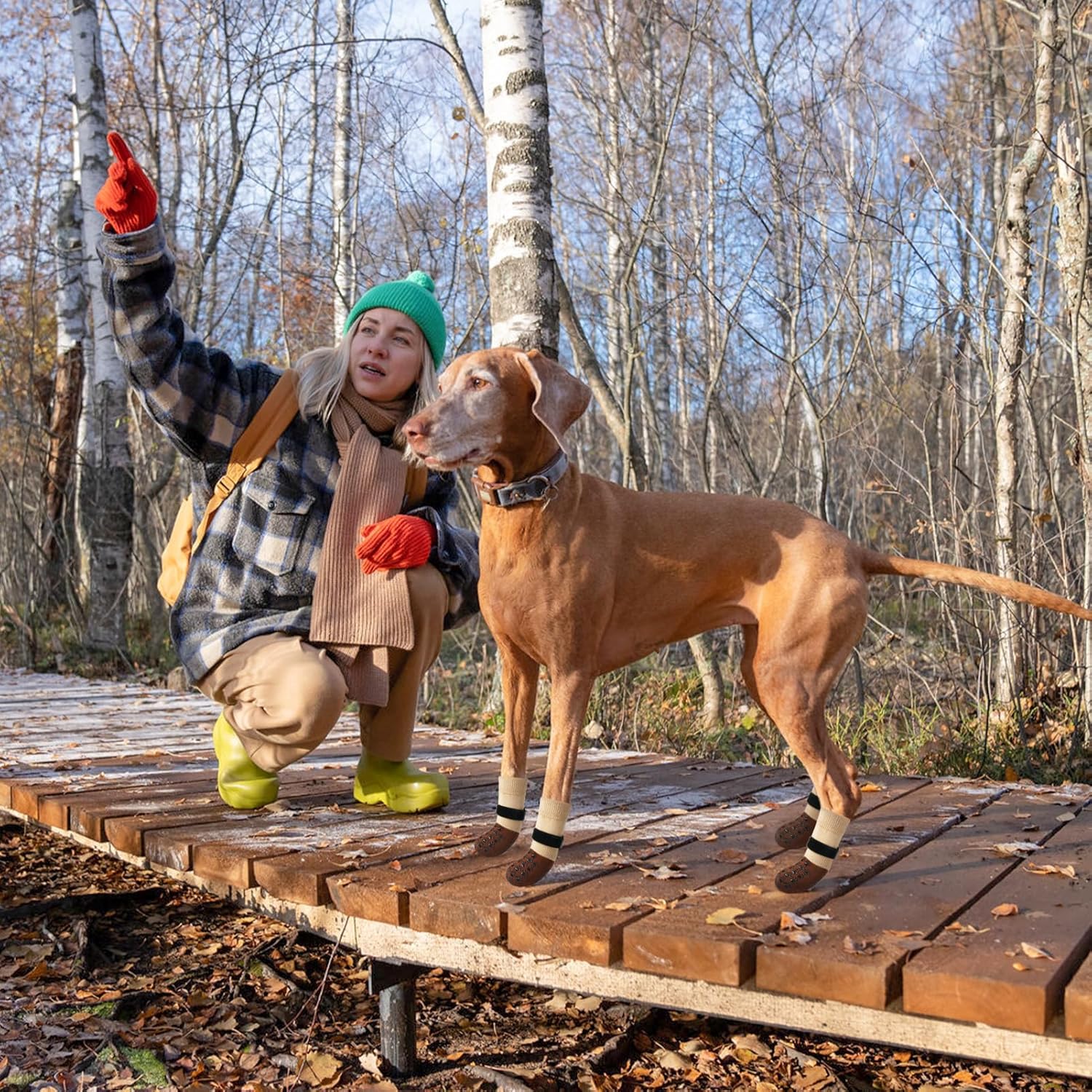 • SIZE M: Paw width 2.55in, sock length 6.3in, grip width 1.7in. Please be sure to measure your pet's size before purchasing. Note: The size of the dog's front paws and rear paws will be different, please measure before purchasing. If it is between two sizes, it is recommended to buy one size up