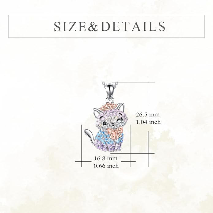 - ๐ Design: This adorable kitty cat necklace is the perfect addition to any animal lover's jewelry collection. Made of sterling silver, this pendant features a cute cat with sparkling cubic zirconia accents. It makes a great gift for women of all ages who appreciate playful and stylish jewelry.
