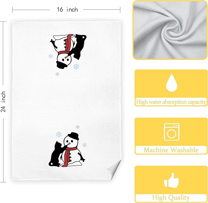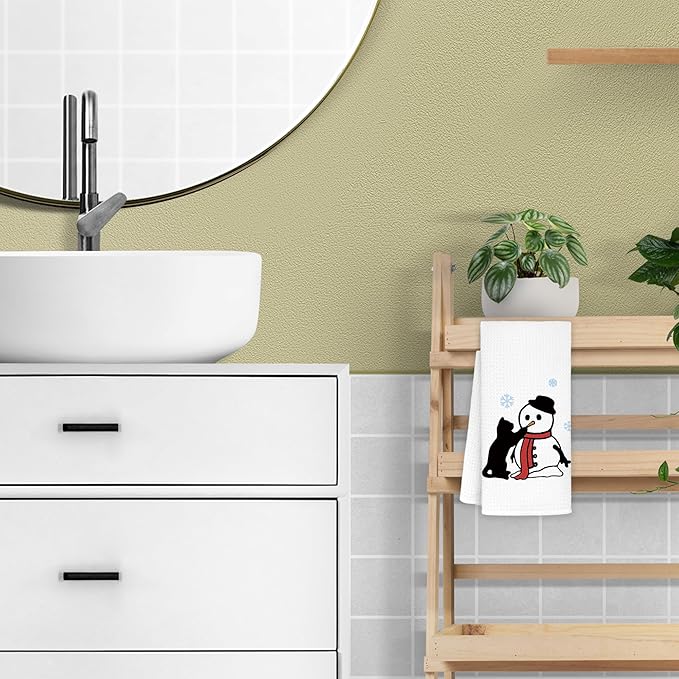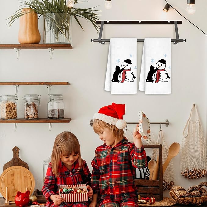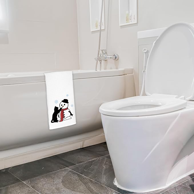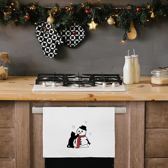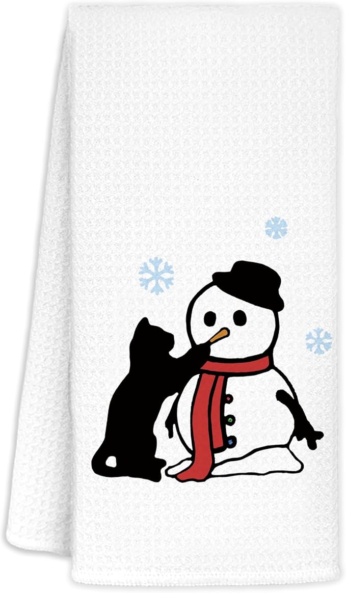 Snowman Cat Christmas Towels for Lovers, Kitchen Bathroom Decorations, Gifts for Women Girls Men Kids, 16x24 in