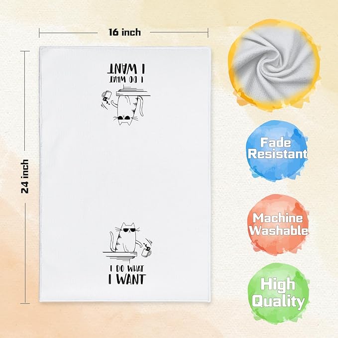I Do What I Want Funny Cat Hand & Dish Towels, Cat Gifts for Women - 16x24 Inch Tea Towels