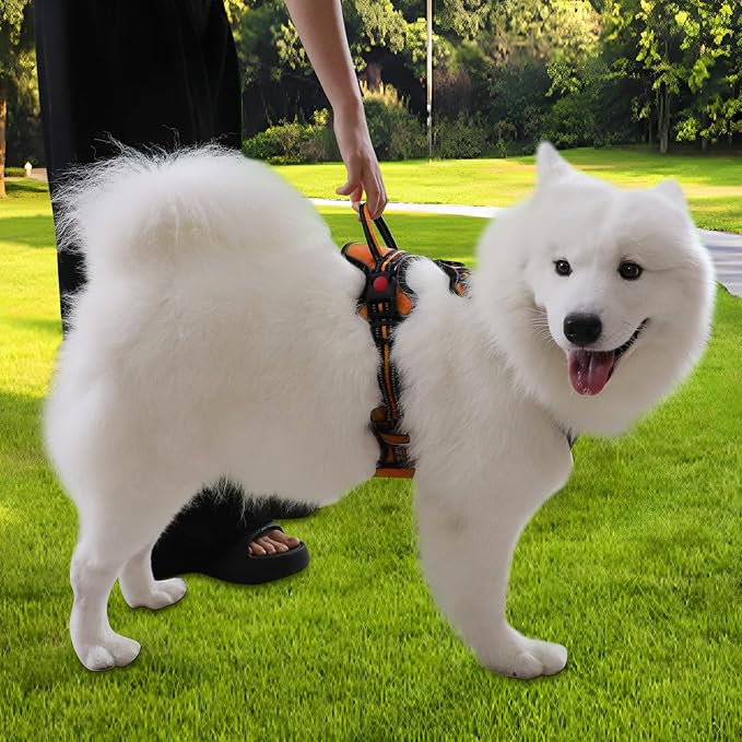 - 【 No Pull & Choke-Free Design 】Designed with your dog's comfort in mind, our No Pull Dog Harness is structured to distribute pressure evenly throughout your dog's body, preventing choking and discomfort during walks. This feature offers a more humane and safe way for you to control your dog.