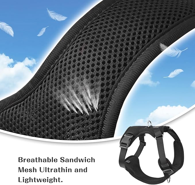 - Escape-Proof Design for Security: Worried your dog might slip out during walks? This harness features a reinforced structure and snug chest fit that stays secure, even on pullers or excitable pups. No more sudden escapes—just peace of mind on every walk, hike, or car trip Easy On & Easy Off : This dog harness is easy to wear with 2 snap buckles. Just slip it over the head, connect the quick release snaps and off you go