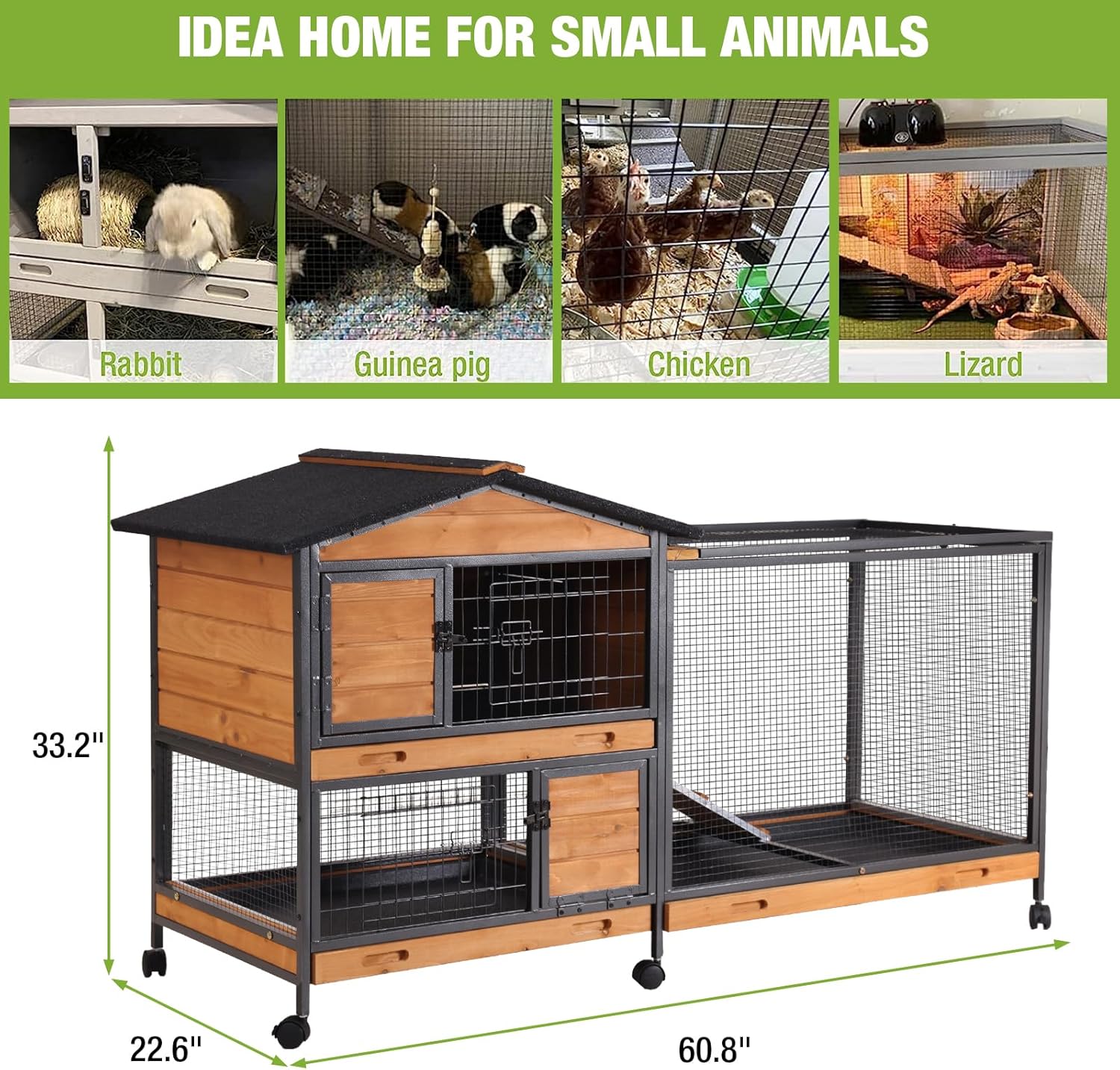 - Multi-Purpose Design: Our Rabbit Hutch is expertly crafted to cater to a variety of small pets, including rabbits and guinea pigs. It's perfect for both indoor comfort and outdoor adventures, ensuring your furry friends have a safe and spacious home
