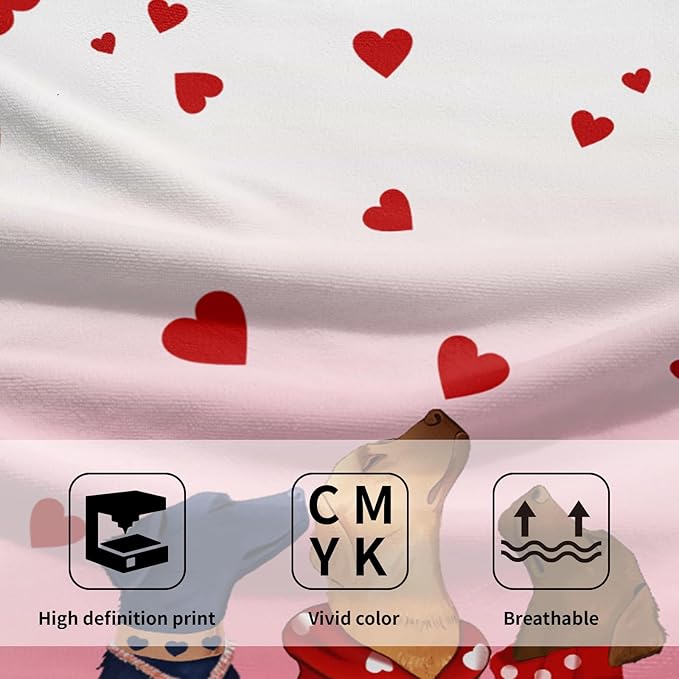 Giwawa Valentine Dog Hand Towels Set of 2 Romantic Love Soft Microfiber Absorbent Fingertip Face Towels for Bathroom Home Kitchen Hotel Spa