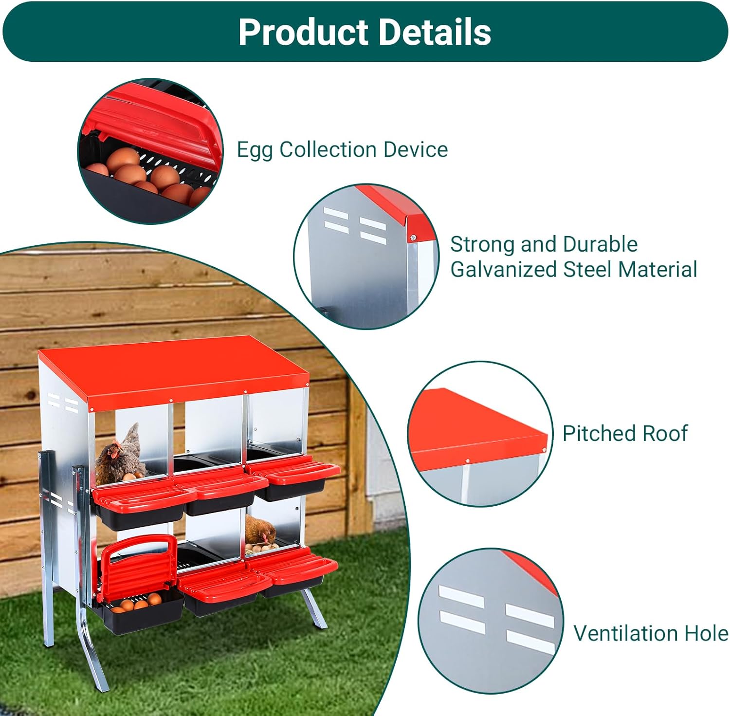 Chicken Nesting Box, 6 Hole 2 Layer Hen Nest Boxes with Legs, Roll Away Eggs Laying Boxes,Cleanable Pull Out Hen Roosting Boxes
