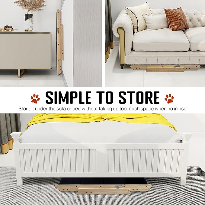- 2-in-1 Design:Pet stairs can be easily converted to either step or ramp mode to accommodate small to medium sized pets in different scenarios. The pet steps are supported by solid wood, the adjustable steps mimic flat ground, promoting healthy joint function and reducing strain on your pet's joints.