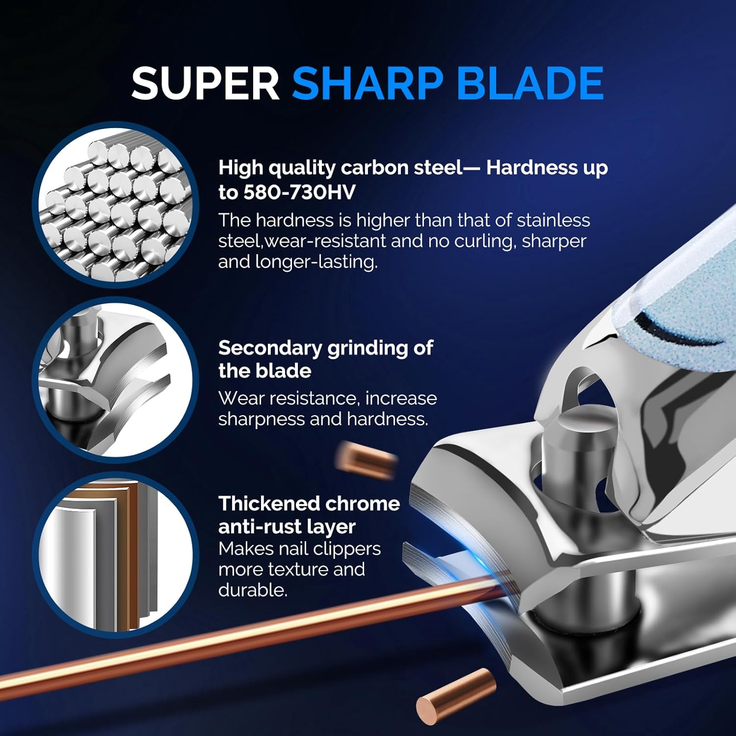 - High Hardness and Sharpness: MelodySusie toenail clippers are made of high-quality carbon steel and stainless steel, which are super sharp and wear-resistant, and can cut nails without leaving burrs. The blade is fully electroplated, so there is no need to worry about the jaws rusting.