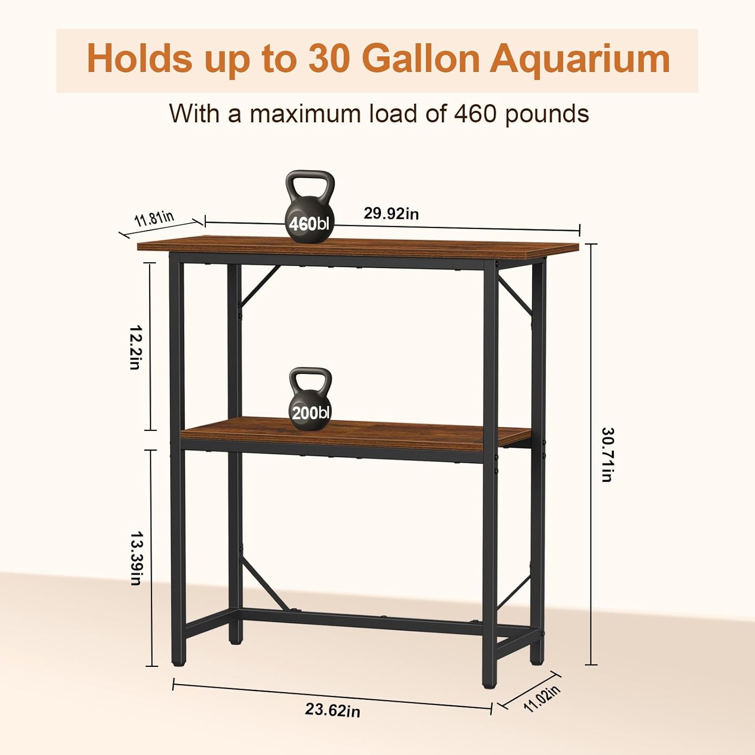 Snughome 10-30 Gallon Fish Tank Stand, Aquarium Stand 2-Tier Storage Shelves, Heavy Duty Terrarium Stand for Home Office Fish Tank Shelf, 30" L x 11.8" W x 30.7" H, Rustic Brown