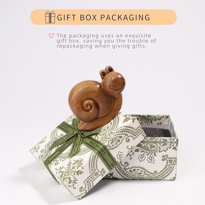 - Charming Wooden Sculpture: Handcrafted from high-quality wood, this delightful snail figurine exudes warmth and character.