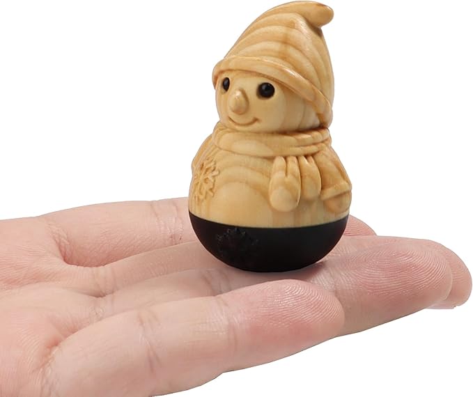 - Charming Figurine: This delightful wooden figurine depicts a smiling snowman bundled up in a cozy outfit with a pointed hat.