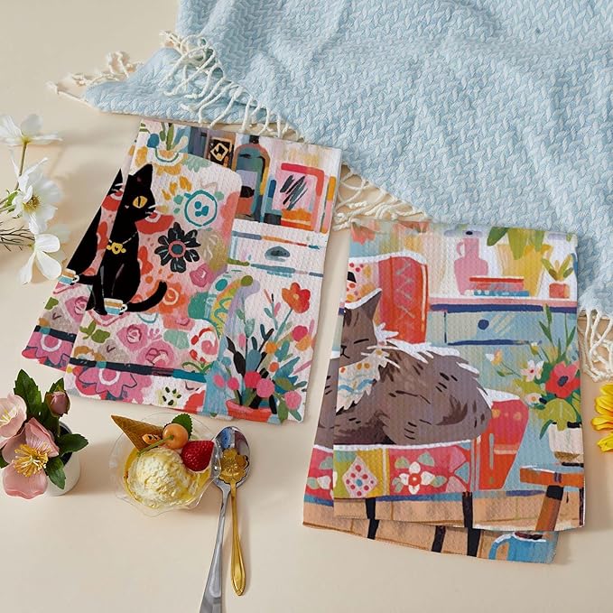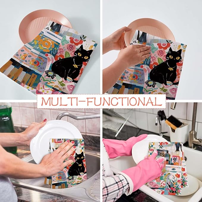 - Multifunctional: You can use it to dry dishes and wipe countertops in the kitchen, as a bathroom towel and tea room hand towel, and as a decorative hand towel for the kitchen and bathroom. This cat towels bathroom has the practicality to meet all your needs