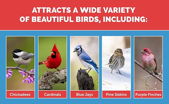 - Attracts Cardinals, Chickadees, Goldfinches, Grosbeaks, Nuthatches, Woodpeckers and much more