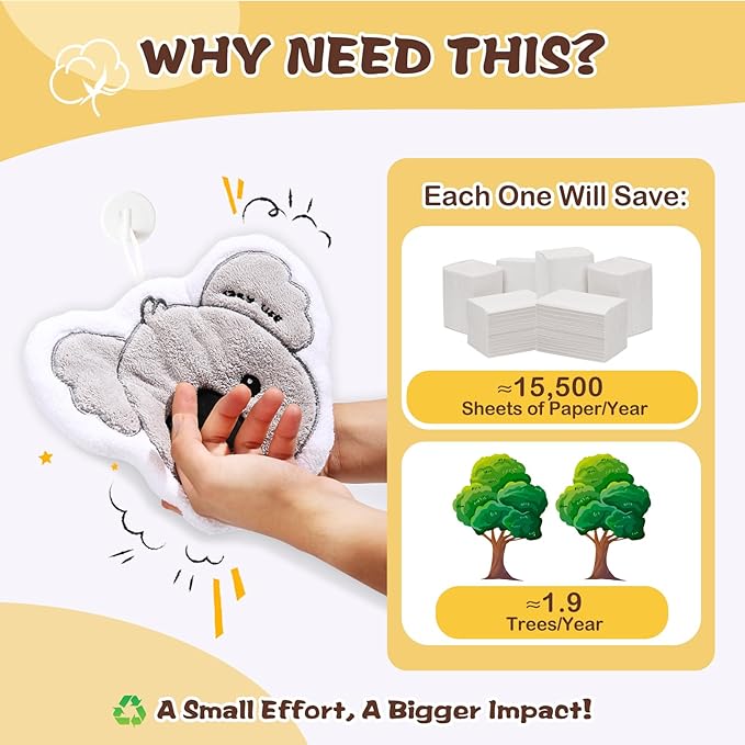 - [Reduce Paper Towel Waste]: Save up to 15,000 paper towels per person each year! Our hand towels only need washing once a week and last a long time. Made from durable coral fleece, they won’t shed or fade, making hand drying easy and enjoyable for the whole family!