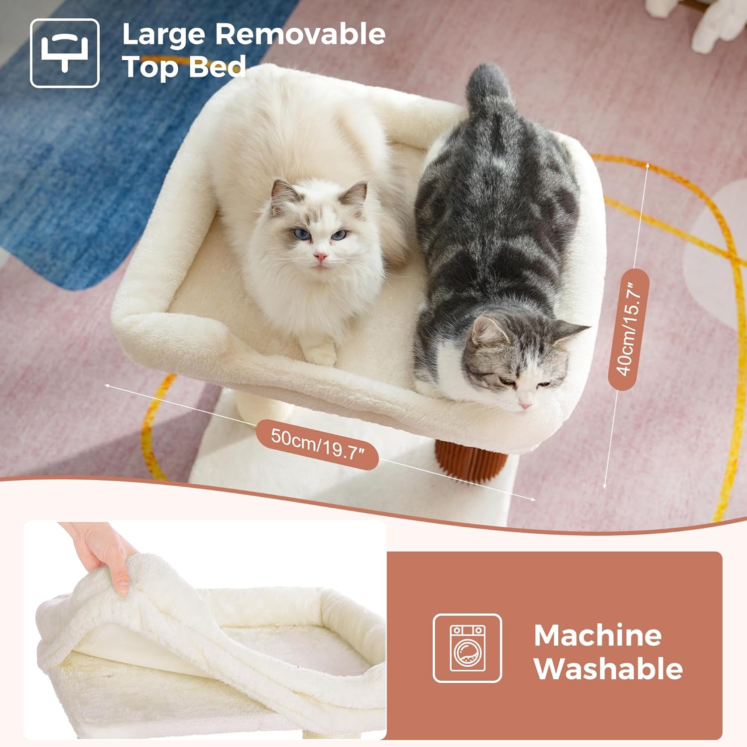 - Spacious Comfort:Our extra-large platform, measuring a generous 20" x 15.7", is perfect for accommodating your big-boned kitty or even two medium-sized cats who love to snuggle up together. The plush padded cushion provides a cozy spot for your cats to rest their furry heads, ensuring maximum comfort during their naps. The removable design help it easy to take off and machine washable that makes cleaning a breeze.