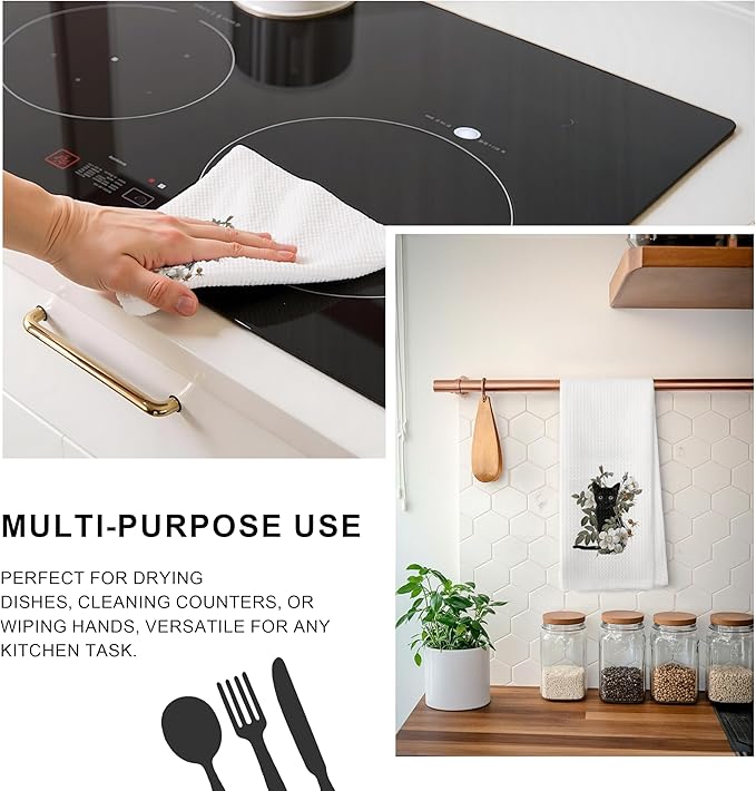 Black Cat Kitchen Towels, Floral Cat Hand Towels for Bathroom, Cat Dish Towels for Kitchen, Cat Towels for Cat Lovers, Black Cat Gifts, Cat Mom Gifts, Black Cat Decor, 16x24 Inch