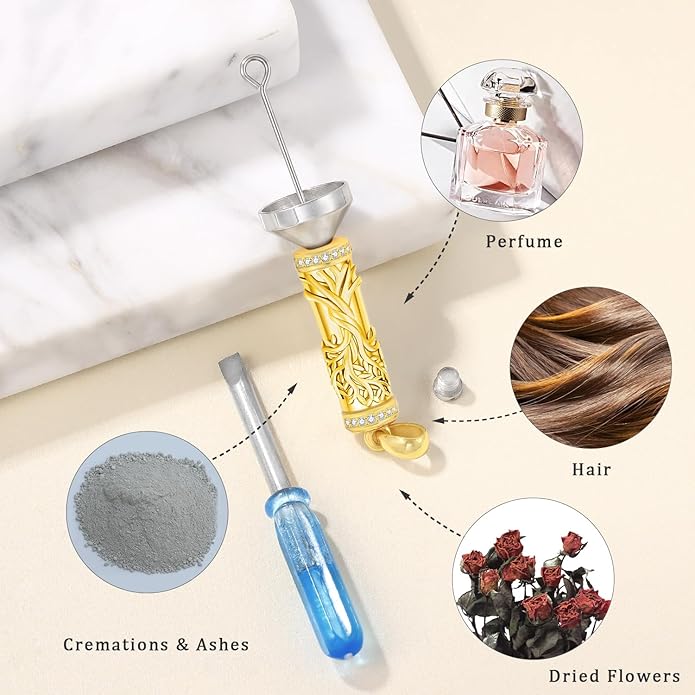 - Tree of Life Urn Necklace: The Tree of Life symbolises rebirth, a bright future, growth and strength, longevity and a new start in life. We hope that the tree of life jewellery for the fire funeral can keep the memories of your loved ones forever in your heart.