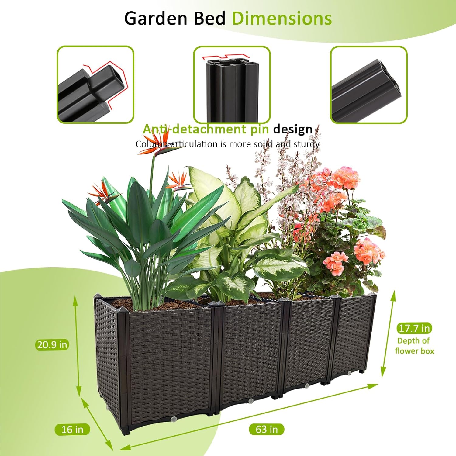 - 🌻【Durable Outdoor Growth Box】Our elevated planter boxes are made of reinforced PP material with a rattan pattern that is lightweight, high load bearing and reusable.