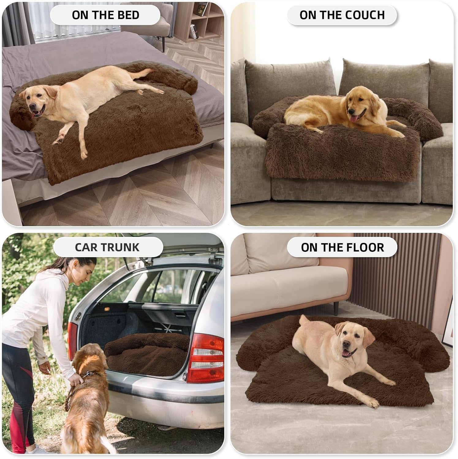 GGIB Calming Dog Bed Fluffy Plush Dog Mat for Furniture Protector with Removable Washable Cover for Large Medium Small Dogs and Cats (Extra Large (53x39.3x6), Coffee)
