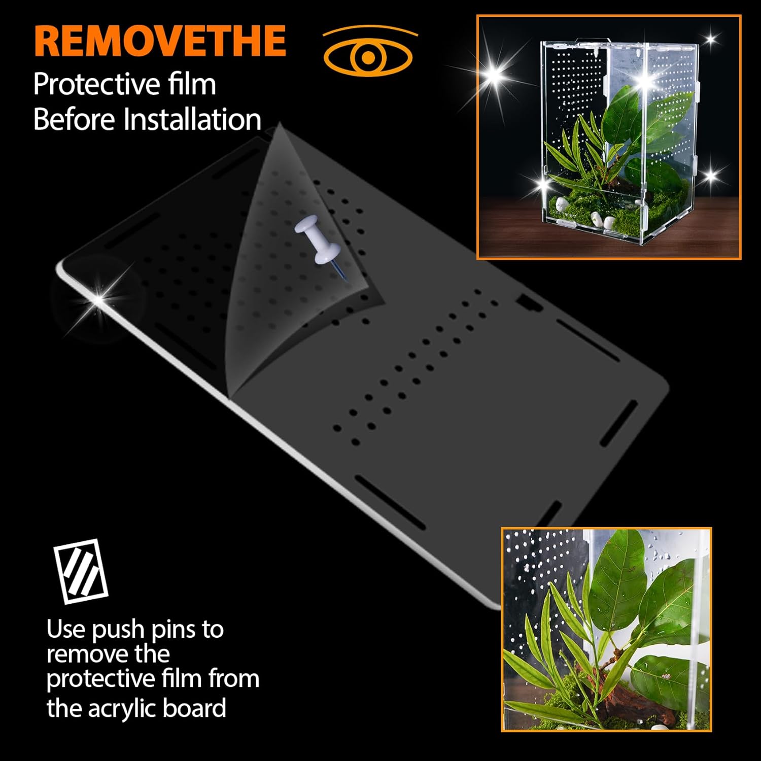- 【Easy Installation】First tear off the protective film on the surface. Acrylic terrarium tarantula enclosure require only a simple installation, and rubber bands work well to hold everything together. It is also easy to disassemble when not in use, saving storage space.