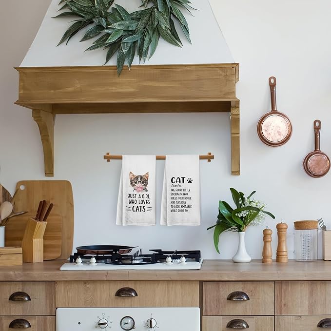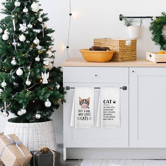 Funny Cat Kitchen Towels and Dishcloths Set of 2, Just a Girl Who Loves Cats Dish Towels, Cat Gifts for Cat Lovers, Cat Kitchen Decor, Cat Hand Tea Towels for Bathroom Kitchen, 16x24 Inches
