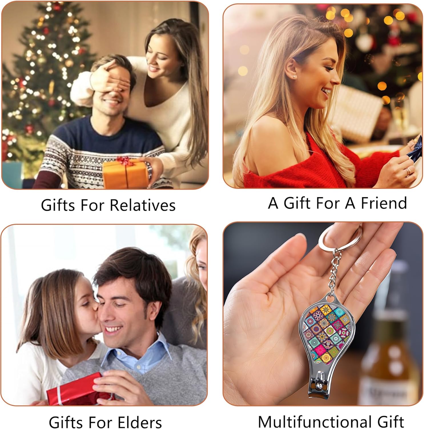 Nail Clippers with Key Chain Cute Stainless Steel Nail Cutter with File Professional Toenail Clipper for Men Multifunction Toenail Clipper 2 Pack Nique Cutter for Adult(Mandala)